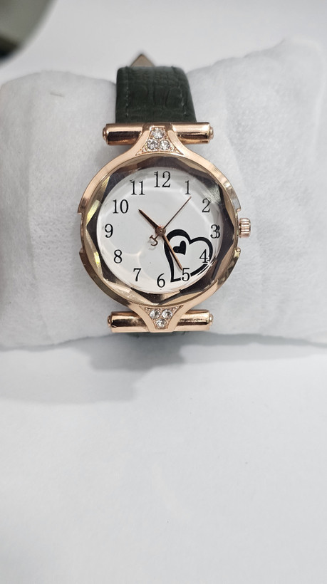 ساعت دخترانه صفحه سفید بند چرم سبز